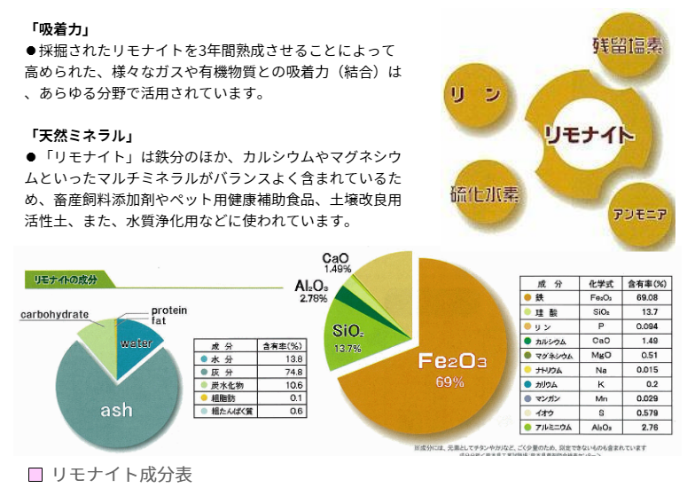 わんこのリモナイト・にゃんこのリモナイトの「リモナイト」は獣医学の世界的権威であるアメリカのコーネル大学のジョゼフ・ワクシュラグ教授の研究からも「糞臭・尿臭・体臭を80~85%消すことができる」との研究結果を受けています。リモナイトの特性により、体内のガスや有機物を吸着して糞として体外に排出します。そのため、糞が黒くなりしっかりとしますのでお散歩の後始末も楽になります。およそ1週間食べ続ければ糞臭・尿臭・体臭を抑えることができます。 |