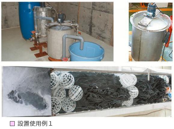 | ◎装置構成がシンプルなのでスペースを取りません。 ◎油分は、微生物により 有機分解 されるため 効率的 です。 ◎ ランニングコスト は、攪拌機の 電気代 のみです。 ◎従来の油分の 清掃・処理 が 少なく なります。 ◎油分のみでなく処理過程に 泡の発生する汚水の処理 に |