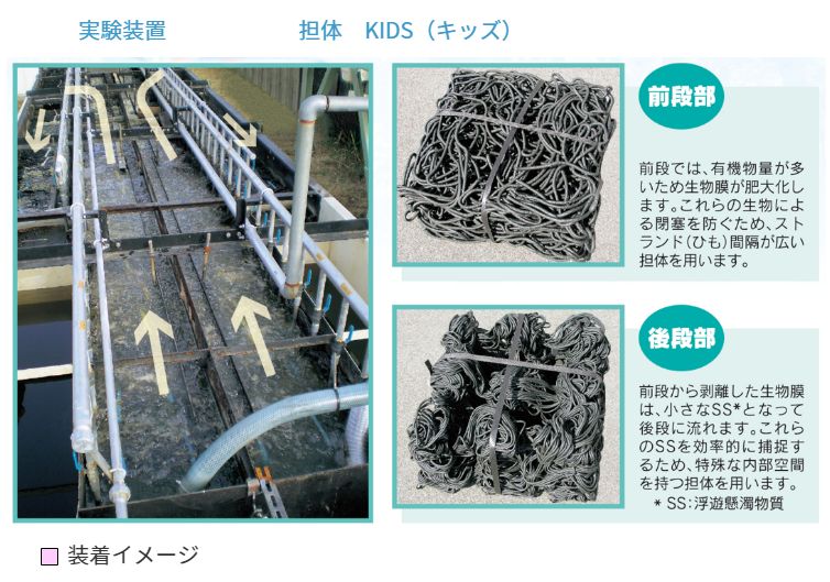 | 廃水処理(排水処理)のお悩み解決! KIDS(キッズ)は、画期的な有機物分解アイテムで、嫌気・好気の場を利用した水処理などに使用できます。 |