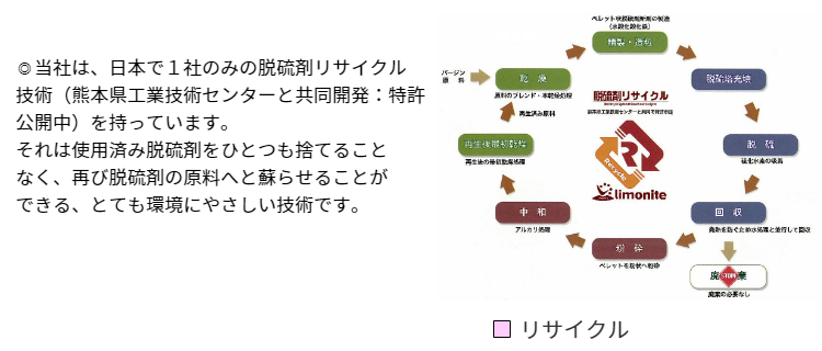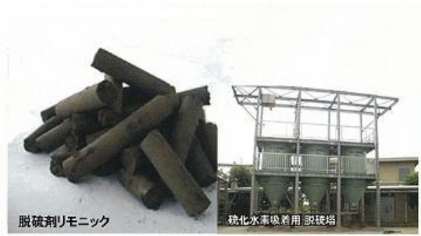 | 脱硫剤とは、硫化水素を吸着する「脱硫化水素剤」のことです。硫化水素は人体に対しては健康障害を引き起こし、設備・機器に対しては腐食の進行を早める大変有害な気体です。このため硫化水素の発生環境においては、この有害」な気体を除去するため、脱硫剤が必要となります。当社の脱硫化水素剤リモニックは天然資源リモナイトを使用した脱硫剤です。 |